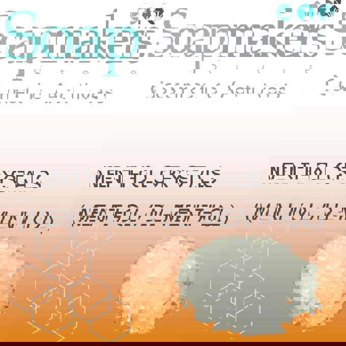 You can add Menthol Crystals to Soap but be sure the product has completely melted and dissolved in the Oil base before adding. They will dissolve in the liquid Coconut Oil or in the Essential Oils before you add to the Soap mix. You only need to use a little as the odour is quite strong and minty. Menthol Crystals can be used in Balms, Cooling Gels, and Footcare products. The 'cooling effect' of Menthol in Shaving products especially Gels and Balms.