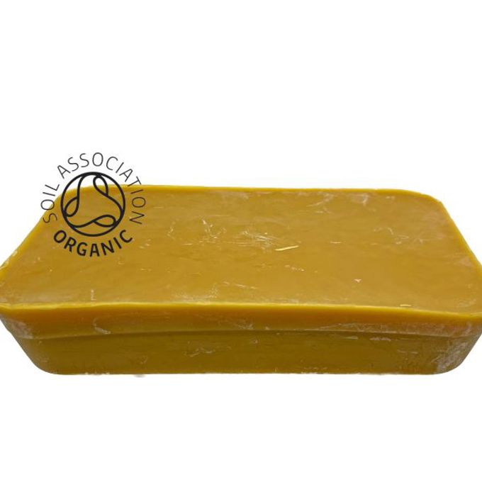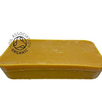 COSMOS Certified Organic Naturally scented Yellow Beeswax supplied in a 1 Kilo block format as received from the producer